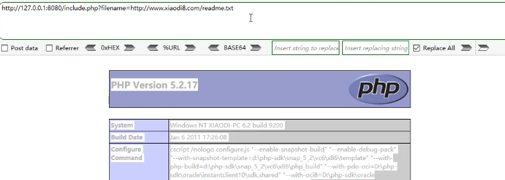 危险更大的是远程包含 在phpinfo中我们可以查看“allow_url_include”来判定是否有远程包含  状态为“On”的话就可以包含远程服务器的文件去执行了  远程包含如果有限制,我们可以通过在代码后加入相关干扰字符尝试去绕过,如%20、%23、?等