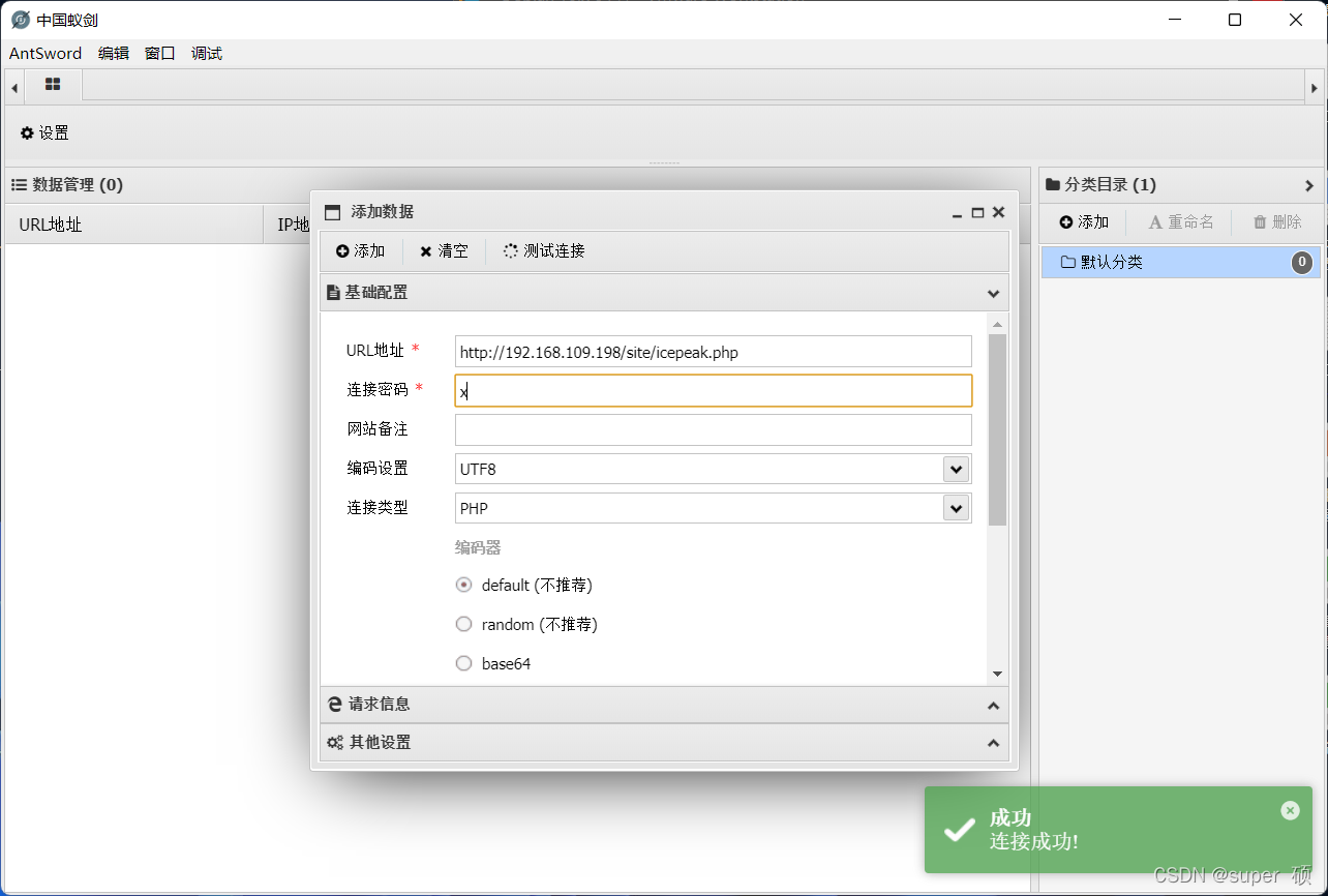 在蚁剑终端输入命令不是很方便,尝试反弹shell 使用蚁剑在/var/www/html/site/下面新建shell.php文件 文件内容