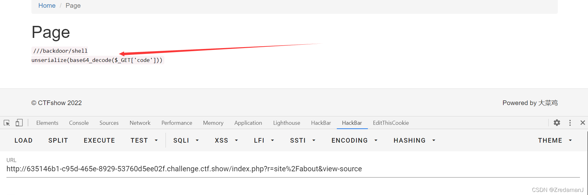 第一次遇到这种本身的php页面没有任何类,不太懂,原来是考查PHP原生类的反序列化........直接看到题目那里有个flag.php,感觉可以直接改X-Forwarded-For为127.0.0.1,但这题开了cloudfare代理,无法直接本地构造XFF绕过。