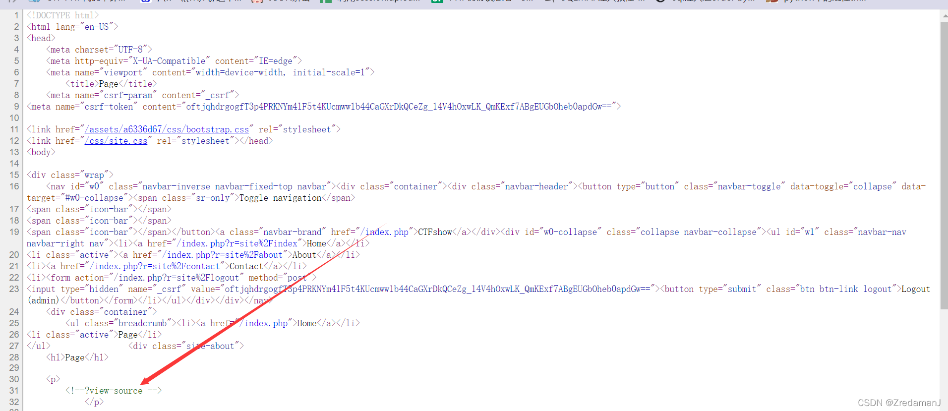 蒙对之后发现about页面不一样了,查看源代码一下,发现一个东西