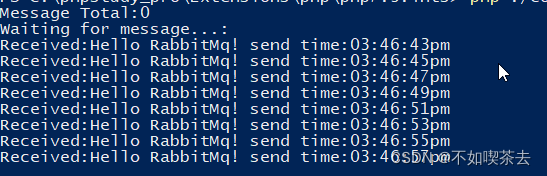 $message = "Hello RabbitMq! send time:".date("h:i:sa");