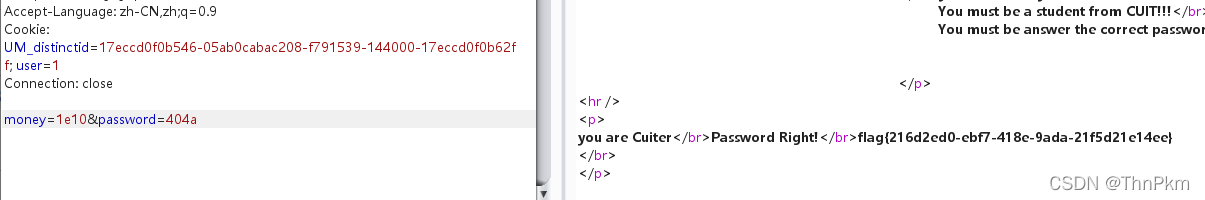 post传入 money=100000000&password=404a(用a来绕过数字判断)