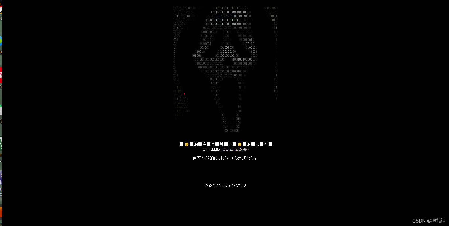 打开进去就是一张鬼脸,没发现有什么提示,QQ那里跳转的链接是大学介绍,看一会儿F12,如果没有就只能扫描了。