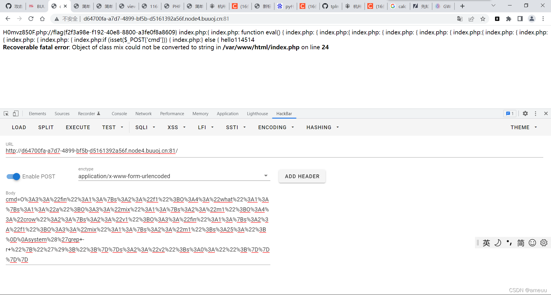 waf过滤了很多关键词和符号,所以几乎不能用SSTI注入,但是当时就想着肯定能用SSTI,所以就一直卡住了(
