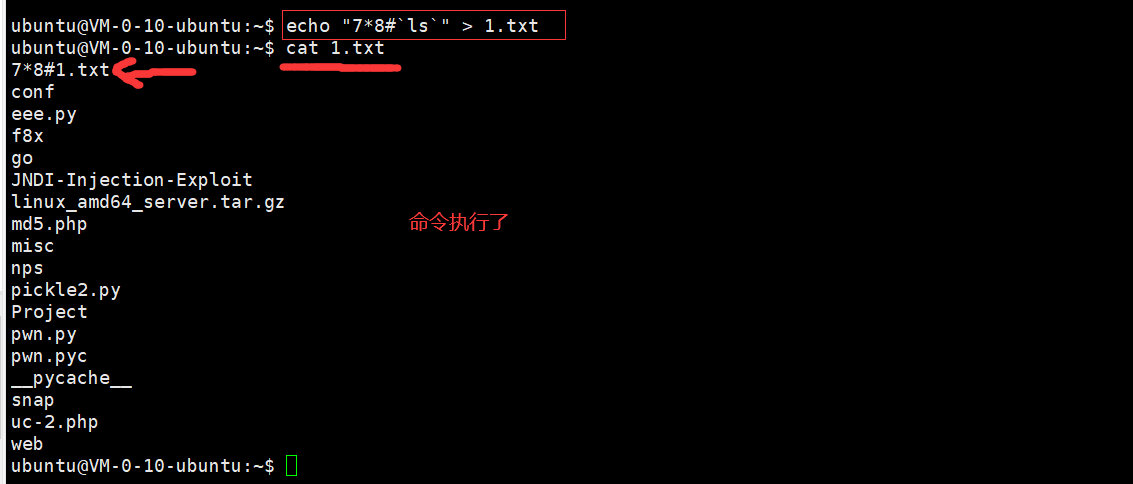 这里考虑到使用Python中的注释符号# ,这个符号可以注释掉python之后的内容,进而使python命令执行不报错。那么我们接下来看看linux中会是什么效果。