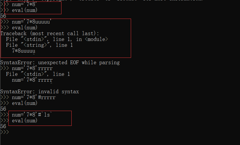 想执行系统命令就必须要经过python的eval 执行,如果输入了别的字符就会导致这个函数报错。