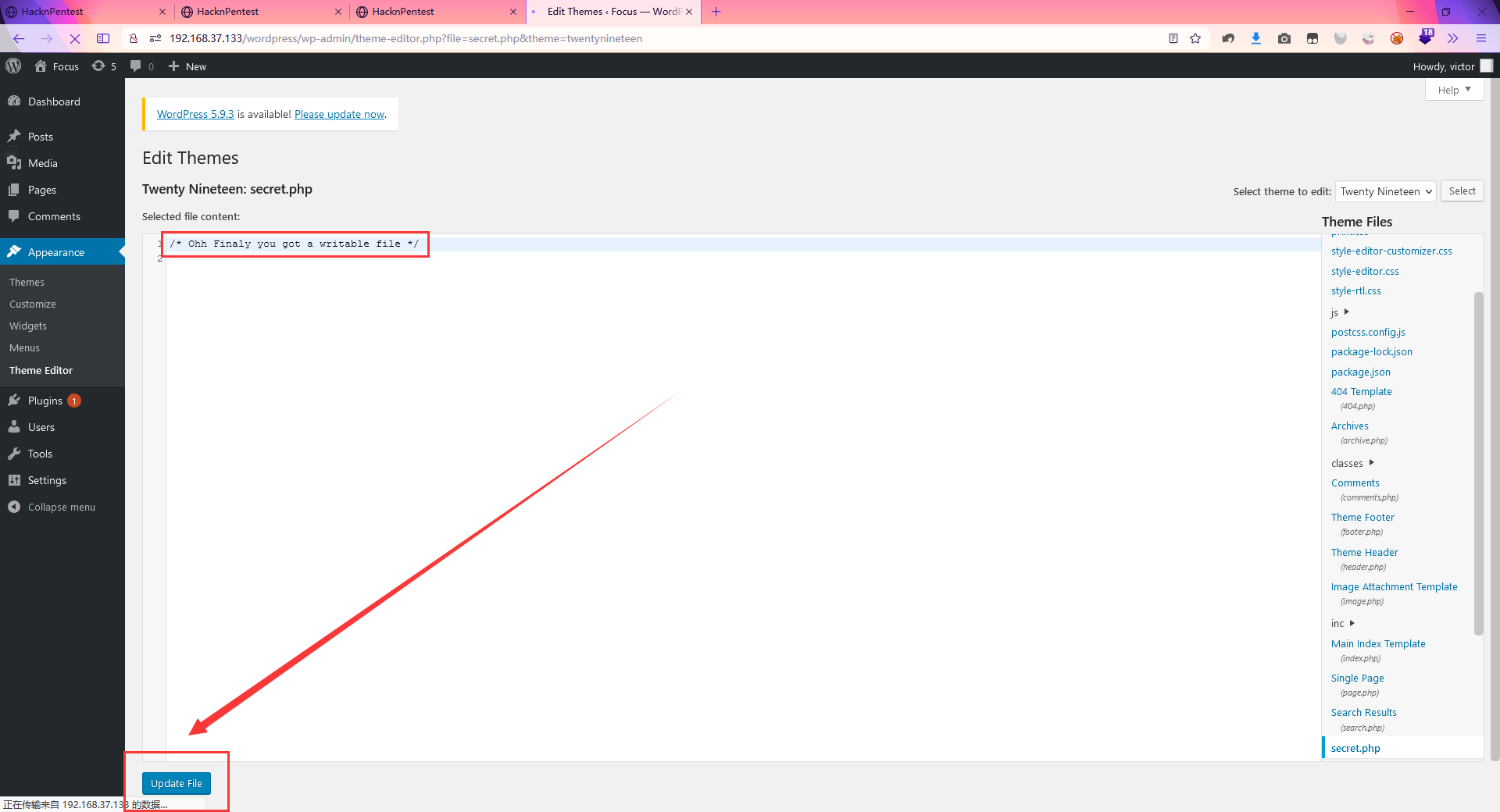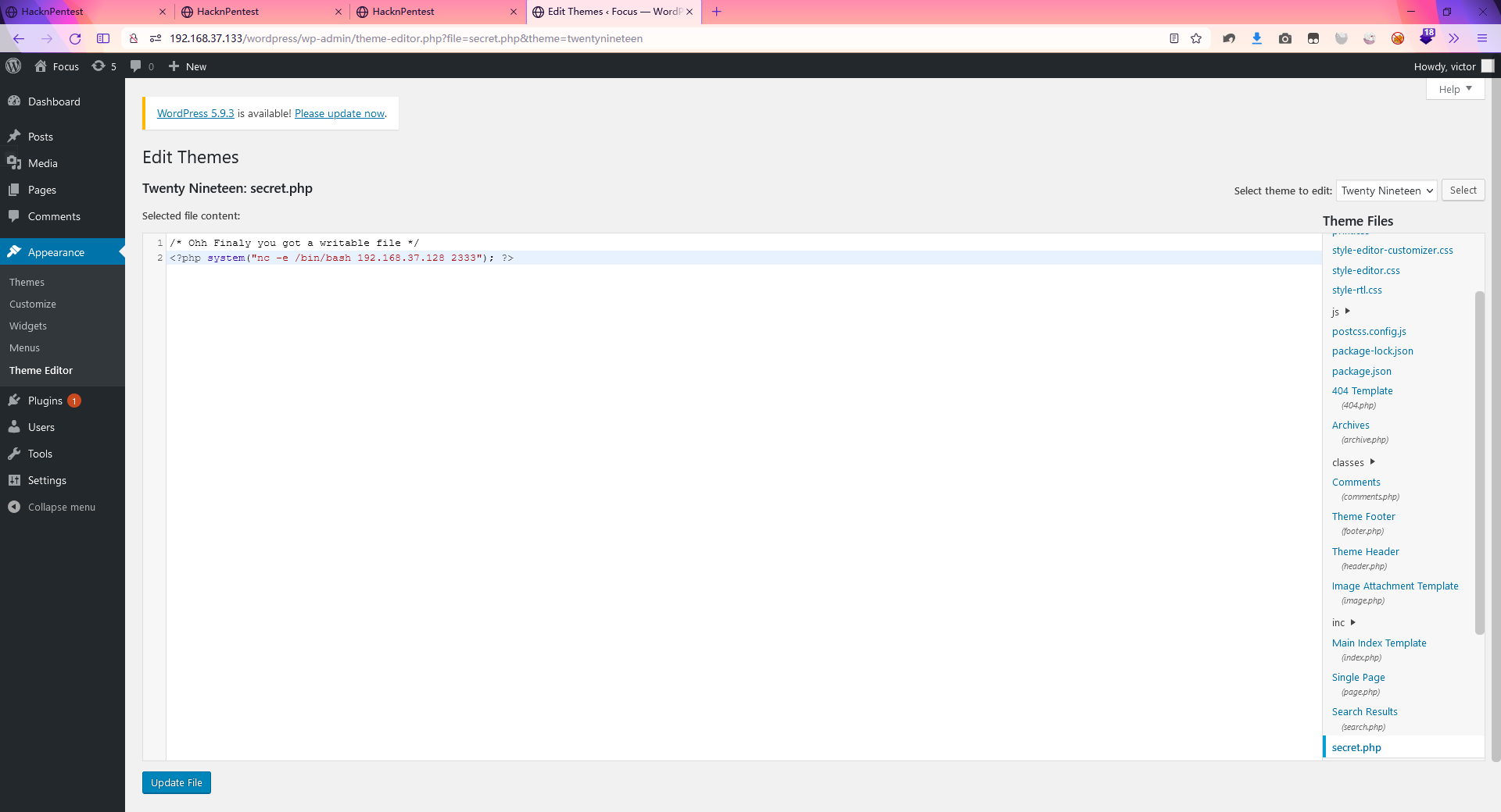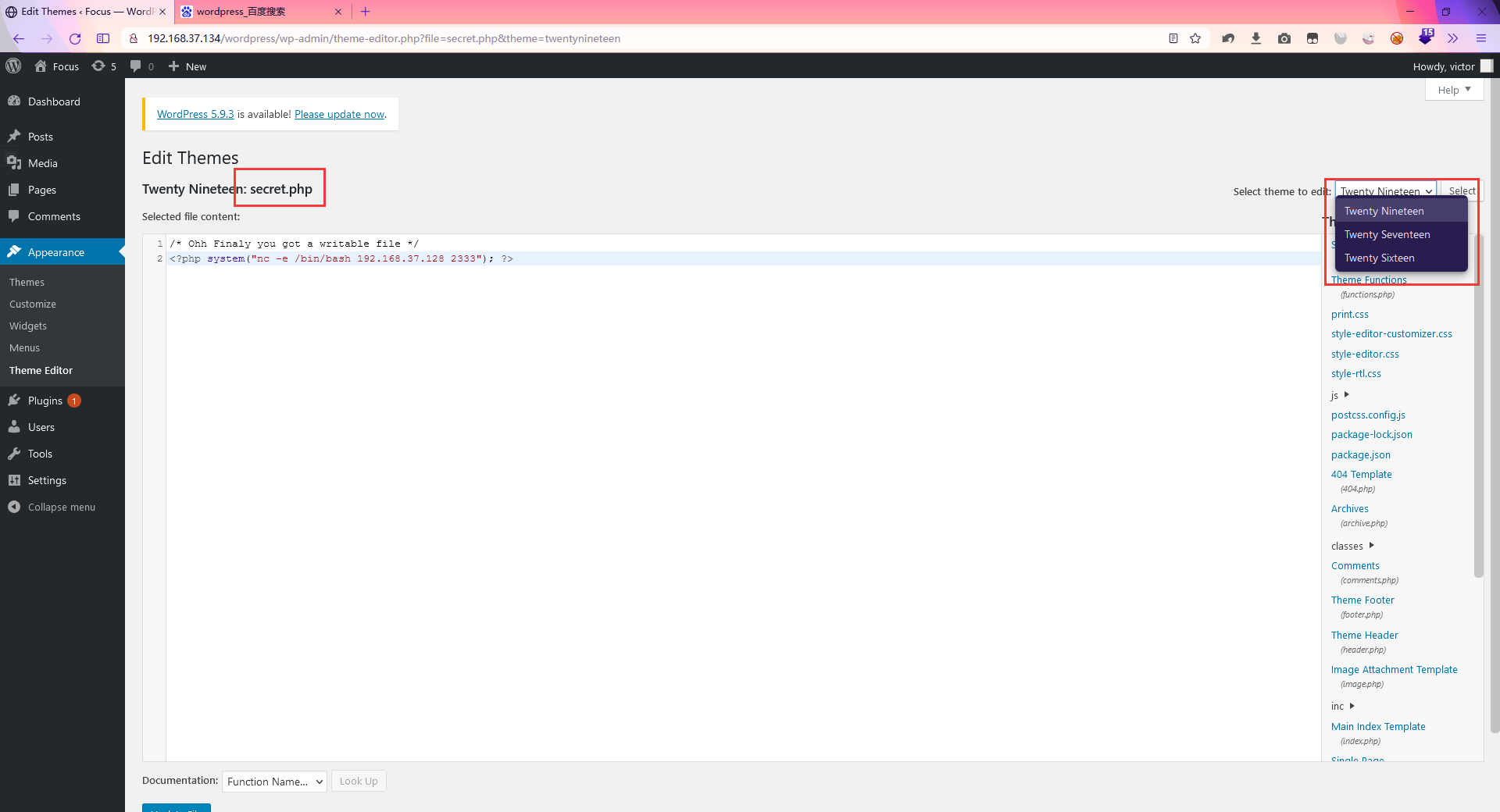 写入反弹命令后我们需要找到对应的 secret.php 执行,在右边可以看到有三个编辑主题