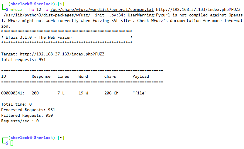 wfuzz --hw 12 -w /usr/share/wfuzz/wordlist/general/common.txt http://192.168.37.133/index.php?FUZZ