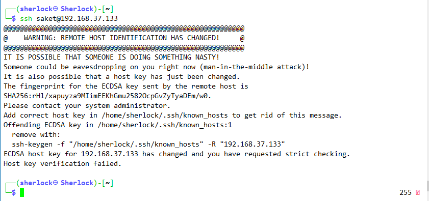 这里我想直接 ssh,但是失败,被检测到了,不允许登录