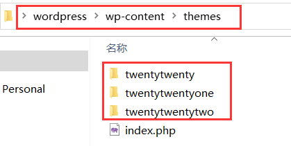 注意这里的 Twenty Nineteen 对应的文件夹名应该是 twentynineteen
