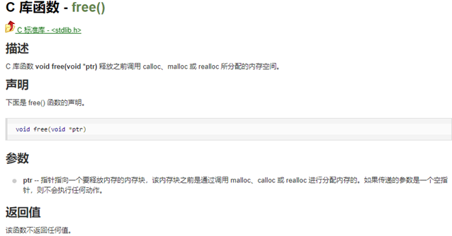 C库函数-free()