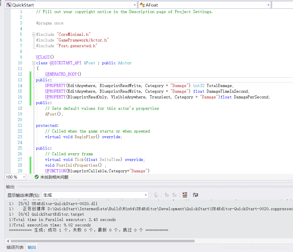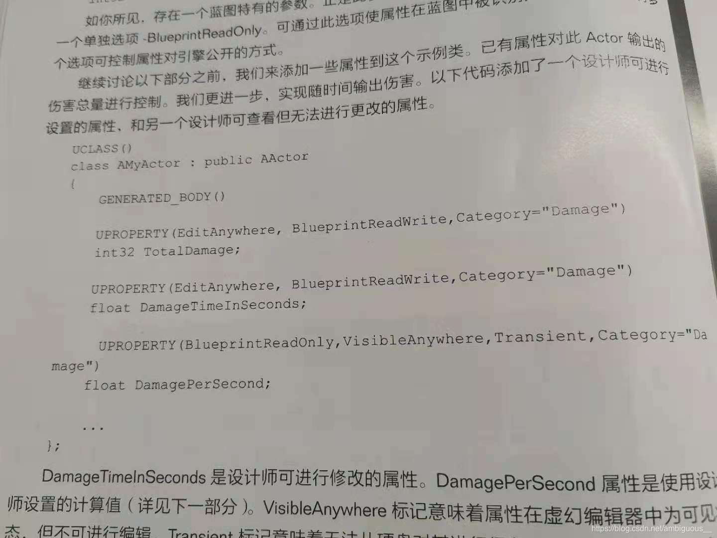下图为没有涉及蓝图参数的UPROPERTY()宏代码通过示例图