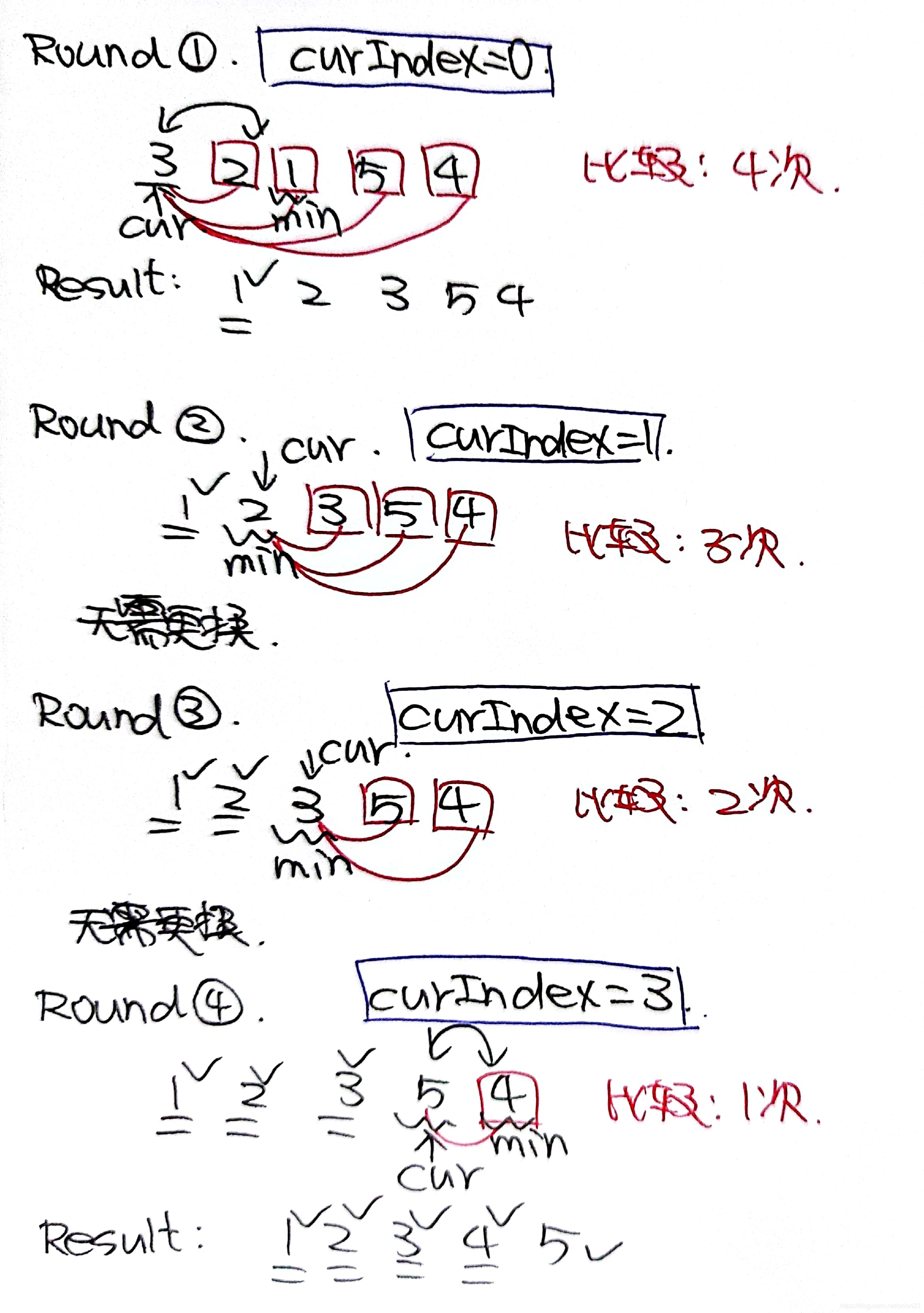 与冒泡排序相似,假设需要排序的数组长度为n,则: