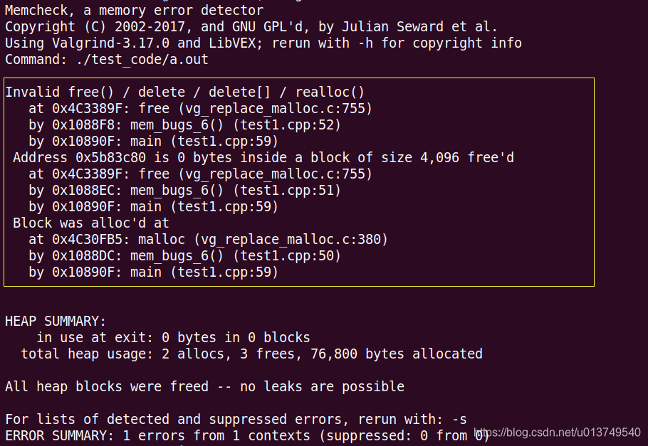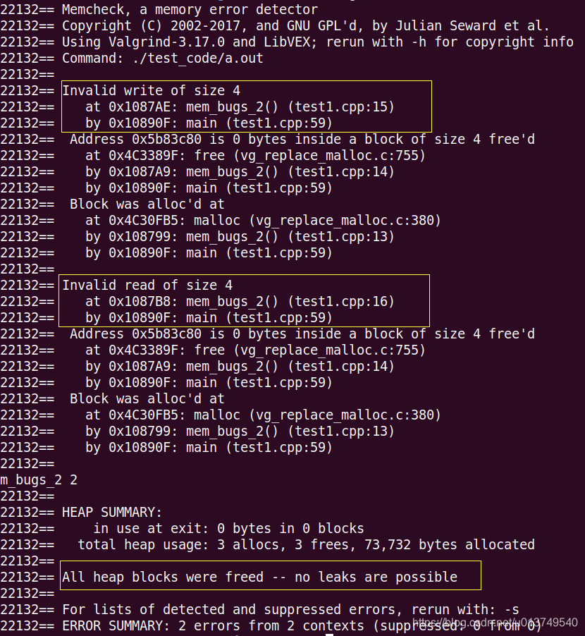 valgrind --tool=memcheck --leak-check=full --track-origins=yes? a.out
