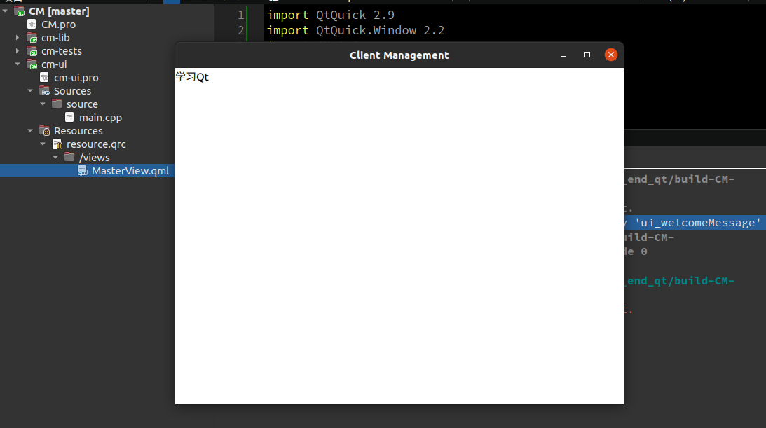 在cm-ui下添加views.qrc views.qrc下添加MasterView.qml 保存CM/cm-ui/views目录