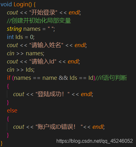 {cout << "登陆成功!" << endl;}