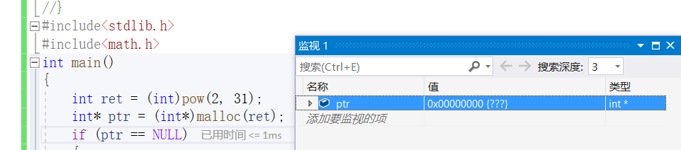 calloc开辟出来的空间也是在堆区上,同然使用完之后要对内存进行释放,同理也要判断是否能开出了来,并置成NULL 👀这里给大家写一个开不出来的情况  这里我在开2g内存的时候ptr返回NULL,如果这里我们没有对返回值做判断,使用的话就会造成错误,当然,想要开出2g或4g空间,只需要把x86改成64位就可以开辟出来了。