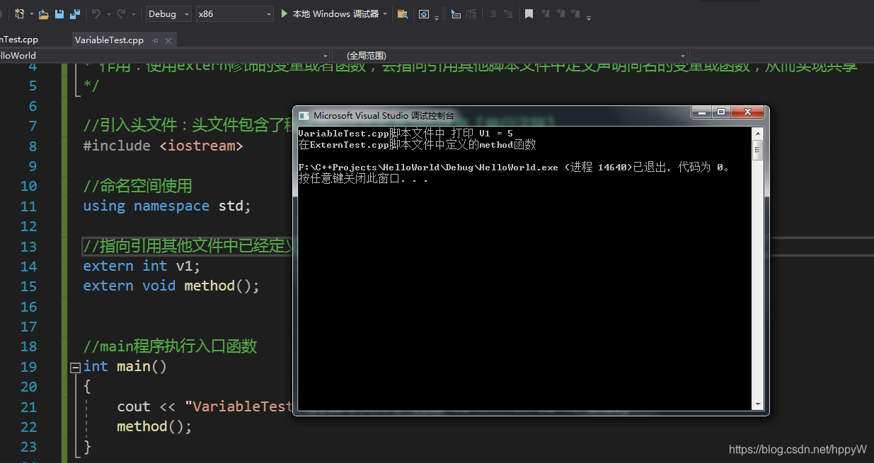 本篇介绍C++语言中关键字extern。实现使多个脚本文件共享使用在某个脚本文件中已经定义声明的变量和函数。