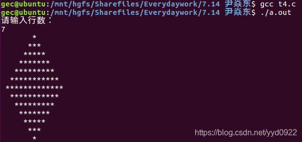 int i,j,k,n;//i行数 j星星 k空格 n输入的总行数