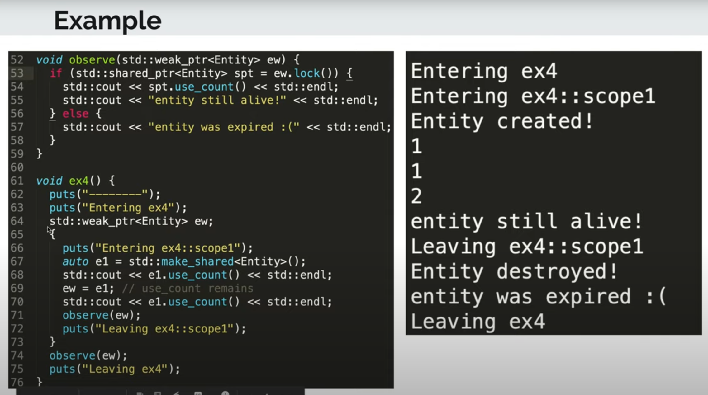 而对于shared_ptr:  shared_ptr在多线程场景用的比较多,而unique_ptr可能更常见于一些单线程的函数。语法上和unique_ptr大同小异,唯一区别是shared_ptr可以赋值,相当于拷贝,use_count+1,而use_count一变为0就立刻销毁,区别于一些语言的垃圾回收机制。   最后是weak_ptr: 所有的weak_ptr必须来自于shared_ptr,用lock函数会返回他的shared_ptr,暂时升级成shared_ptr,use_count++