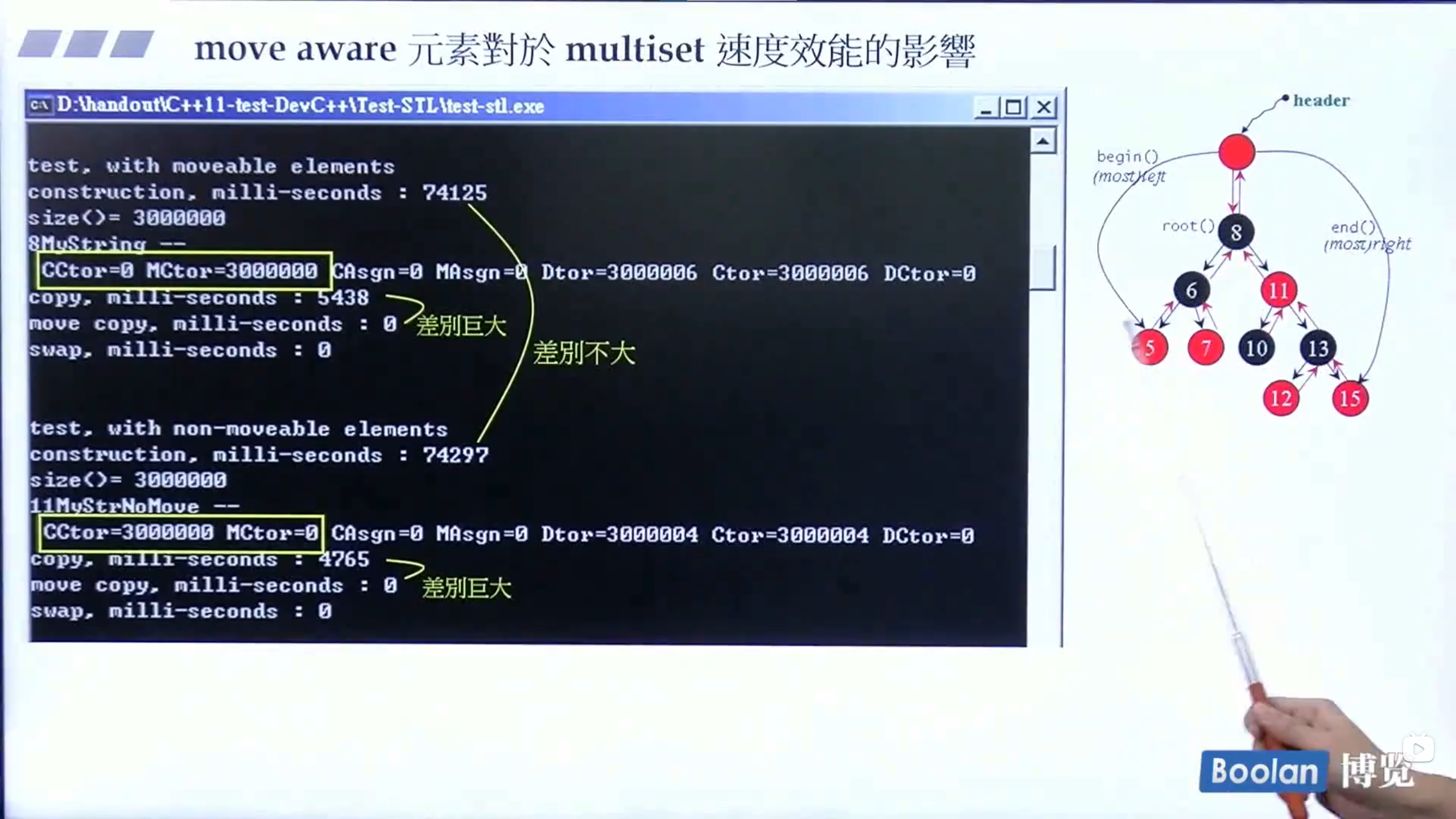如下,vector:一个放有move版本的,一个放没有的,测试结果效率差别很大。(有时候更是巨大的多)
