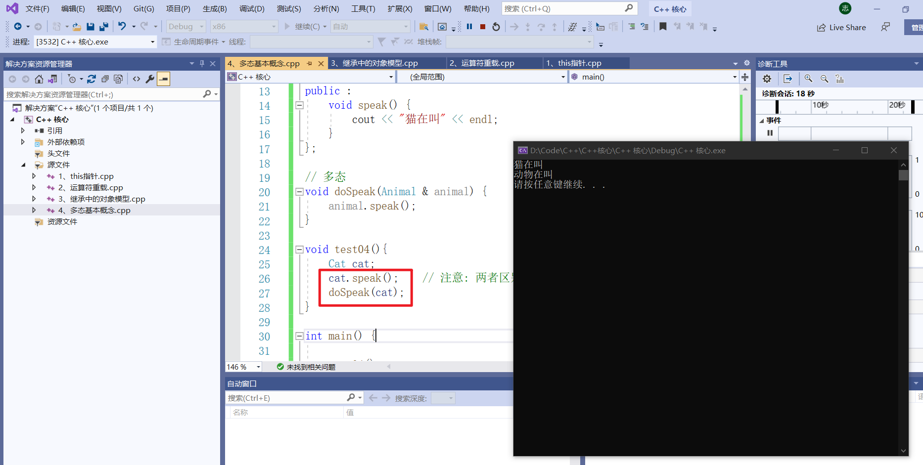 执行说话的函数 : 地址早绑定在编译阶段确定函数地址, 如果想执行让猫说话,那么这个函数地址就不能提前绑定,需要在运行阶段进行绑定,地址晚绑