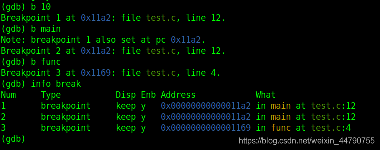 - break filename:function -- 在源文件filename的function函数的入口处停住