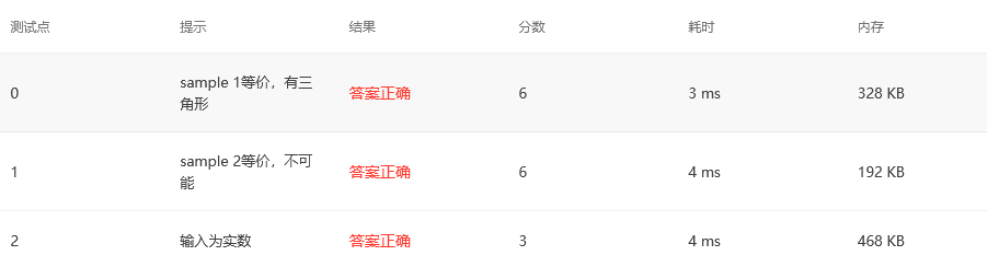 PTA(浙大版《C语言程序设计(第3版)》题目集)习题3-5 三角形判断 (15 分)