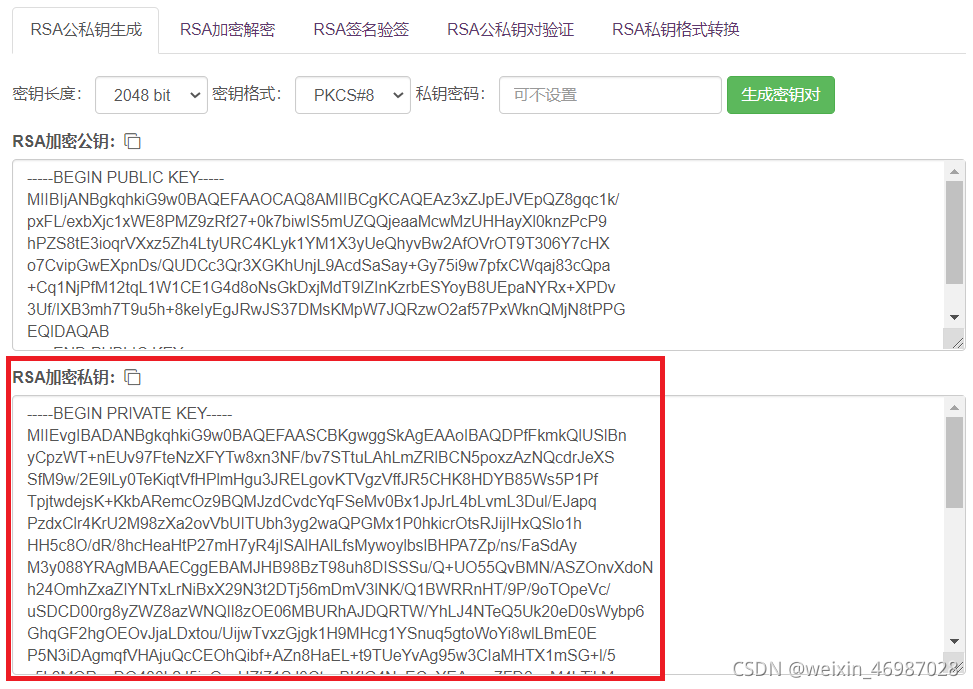 ?3.1 首先,使用在线工具生成密钥, 将私钥复制保存为文件testkey.pem