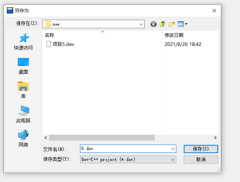 ??一般来说,同一类功能的函数(math.h)或者同一文件中的函数放在同一个文件中。我这里使用了2个文件,一个文件放和文件读写相关的函数,另一个放和这个项目有关的所有函数。当然这样还是笼统的分,分多少文件也看个人习惯,这里做简单处理,就分2个吧,再加上对应的头文件和main函数文件,本项目共5个文件。 ??Dev c++多文件编写: ??首先,打开。  文件—新建—项目(所有的多文件工程都要新建项目)  我们选第二个:控制台程序,并选择C语言  ??选择一个保存项目的地方。最好新建一个属于这个项目的文件夹,方便后续添加文件。 ??保存,OK,项目就好了。 ??它会自动提供一个main函数模板