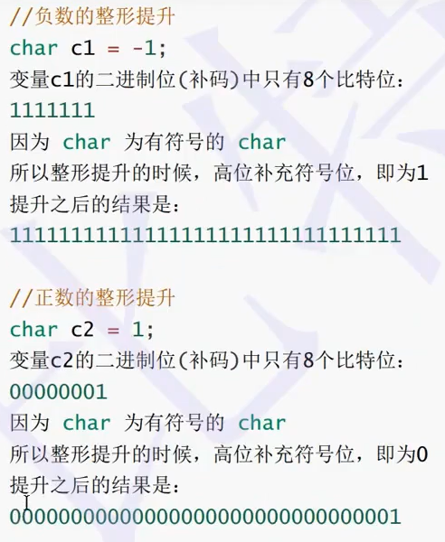 C的整形算数运算总是至少以缺省整型类型的精度来进行的。 为了获得这个精度,表达式中的字符和短整型操作数在使用之前被转换为普通整型,这种转换成为整型提升。  如何进行整型提升?