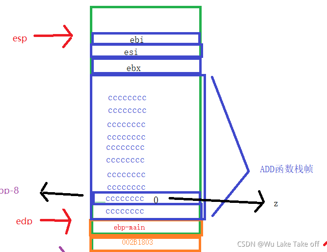 有eax、ebx、ecx、edx、ebp、esp等寄存器,主要理解ebp、esp这两种寄存器