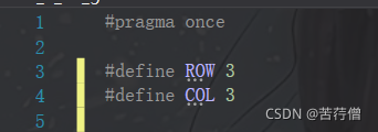 这时,我们可以用一个二维数组来当一个棋盘,用来存放其中下棋的数据,它的行和列的话,为了不直接写死棋盘的大小,我们可以使用符号常量来确定,所以最好就在 game.h文件中定义两个符号常量: