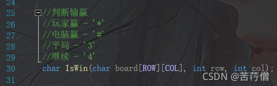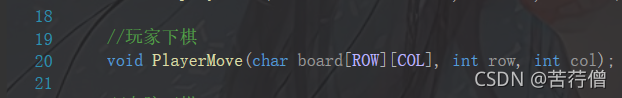 ?这里需要注意的就是:我们是在game.h文件中定义的 ROW 和 COL,所以在 test.c文件中使用时,需要引我们自己的头文件 #include "game.h"。