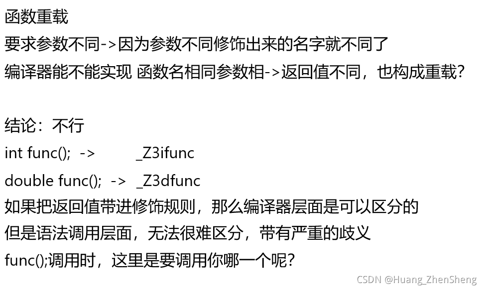 函数名相同,只要参数不同,修饰出来名字就不同,那么就能区分,就支持重载