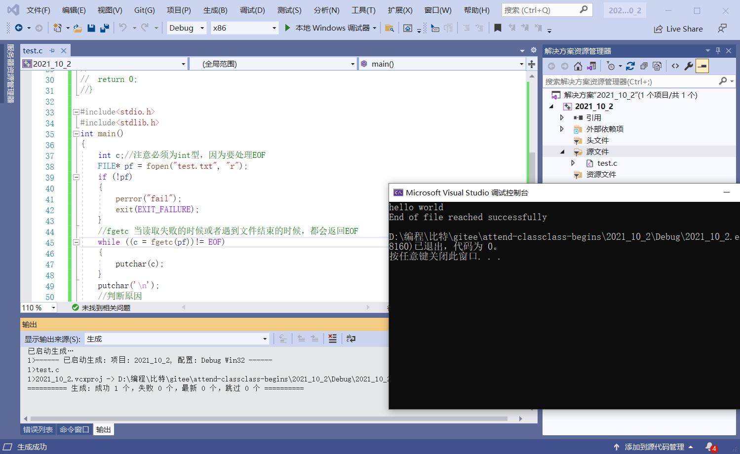 运行前现在源文件当前目录下创建文件test.txt,其中保存字符串hello world。