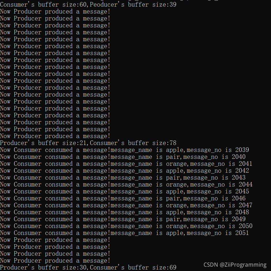 printf("Consumer's buffer size:%ld,Peoducer's buffer size:%ld\n",c_buffer.size(),p_mailbox.size());