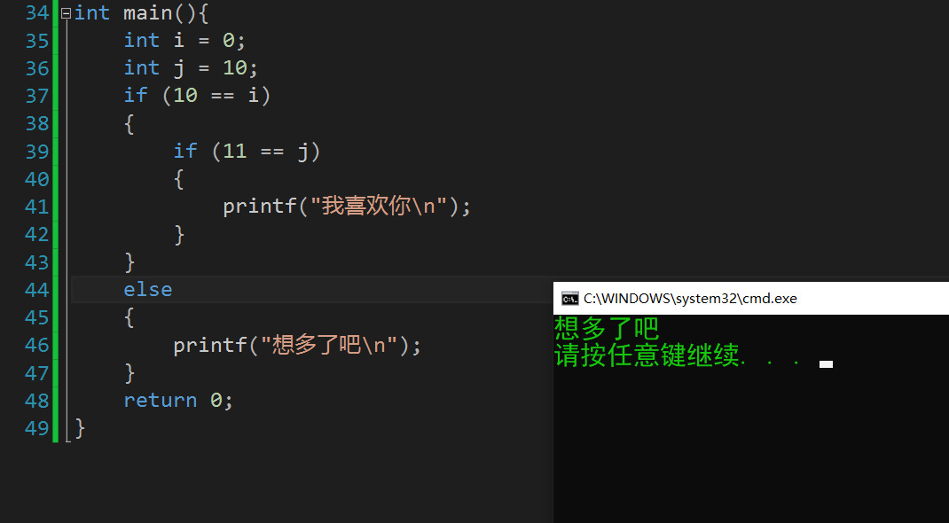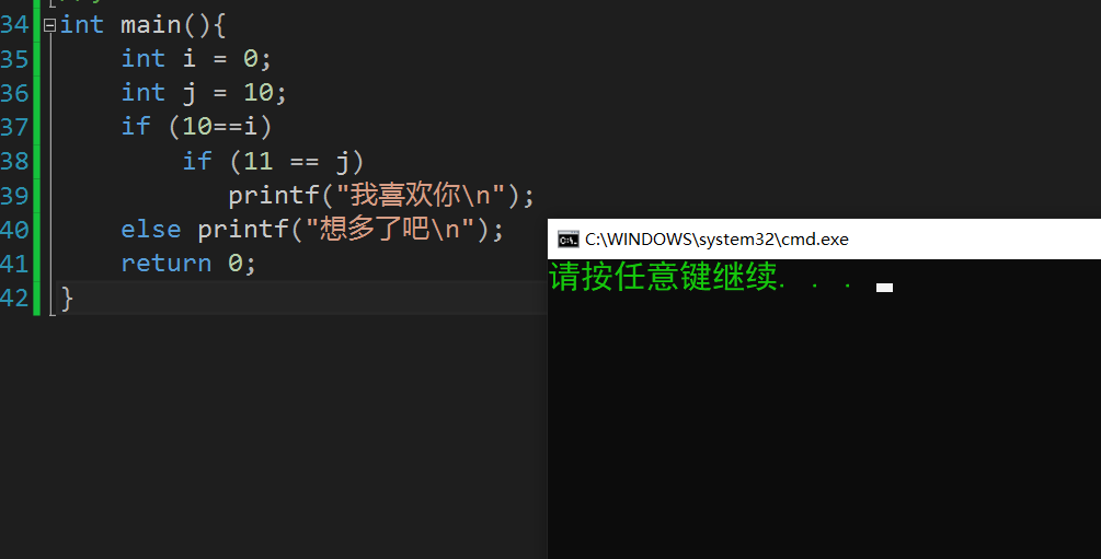 因为else之和最近的if配对  这样就很好啦,强烈建议加大括号,阅读性好 if语句爱出错误点  if不加大括号只对后面一条语句执行,C语言以分号结尾就是一条语句呀 如果有什莫错误,尽管指出,必虚心学习,如果感觉还行,期望三连关注哦,感谢您的支持!!!