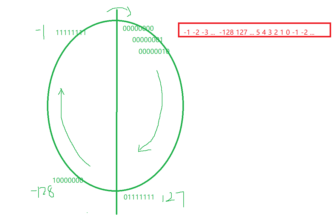 原码:将二进制按照正负数的形式翻译成二进制 反码:将原码的符号位不变,其他位依次按位取反 补码:反码+1 **对于整型来说:数据存放在内存中的是补码。**使用补码,可以将符号位和数值域统一处理。