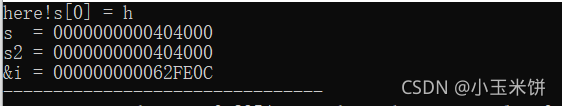 ?可以看出明显本地变量i的地址在比 s和s2更大的地方,而且s,s2指向了相同的地方,一个字符数组的地址,位于代码段并且是只读的,操作系统的保护机制不会让你对它动手,如果让你写了,说明你的操作系统该换了,如果你想对字符串进行修改,应该使用数组