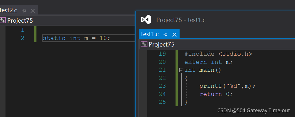 而当不使用static修饰时,程序可以正确运行。这是因为全局变量在整个工程的其他源文件内部可以被使用,就是由于它是具有外部链接属性的。可是,当全局变量被static修饰时,它的外部链接属性就变成了内部链接属性,使得它只能在自己所在的源文件内部使用,可以看做是其作用域变小了