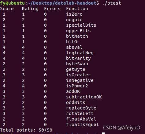 b)? 然后调用 btest?命令检查 bits.c中所有函数的功能正确性。