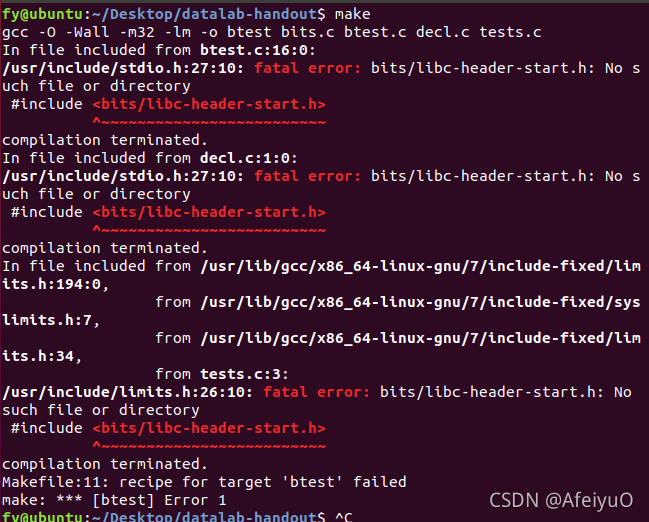 a) 首先使用make编译生成btest可执行程序,部分warning不需要特殊处理,但如果出现的warning过多则需要适当注意是否程序中有错误。(以下是正确的情况)