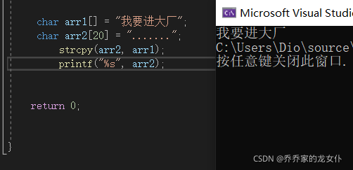 库函数👏 说嘛是库函数呢,简单来说就是C语言提供给我们的函数,为啥有这玩意儿?早期C语言是没有printf,scanf函数啥的,只要if 语句for循环等等;也就是每个人会有每个人的一套“printf”,这样效率就巨低。库函数有IO函数(input/output),数学函数,操作函数等等,这里敲一个strcpy(字符串拷贝)函数如下: