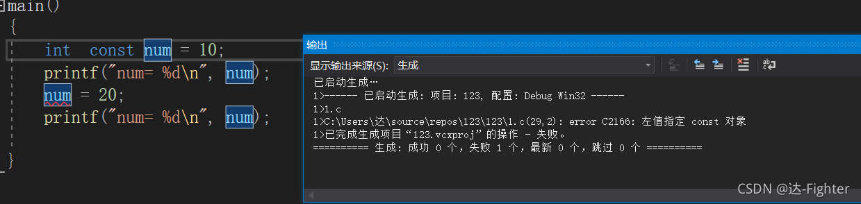 - num被const修饰情况如下: