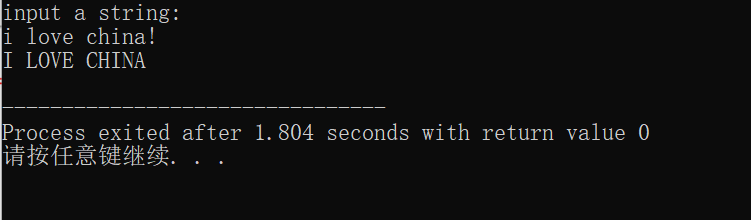 1、从键盘输入一个字符串,将其中的小写字母全部转换成大写字母,然后输出到一个磁盘文件“test"中保存,输入的字符串以’!‘结束