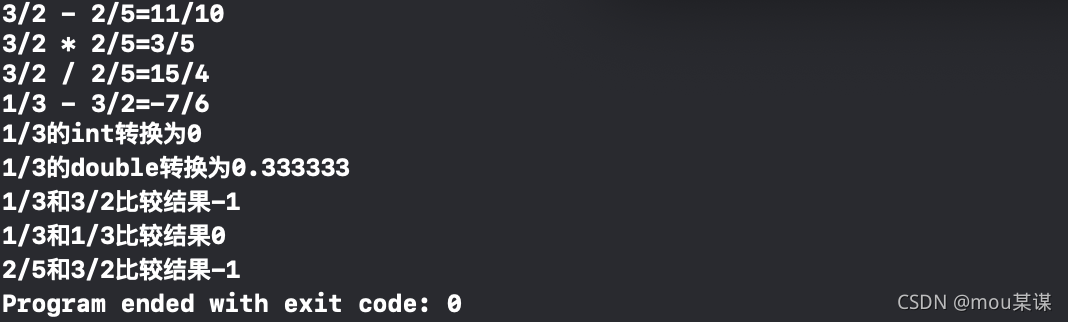 cout<<a.toString()<<" / "<<b.toString()<<"="<<(a.div(b)).toString()<<endl;